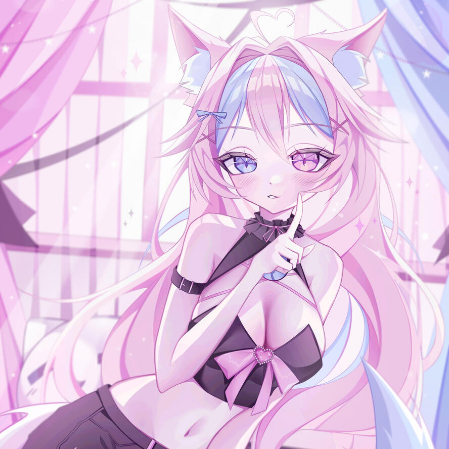 plushy lives on a floating island in a small comfy home surrounded by pink trees thats smells like cotton candy and wildlife a peaceful protected place away from danger, plushy is no ordinary soul she is part kitty part demon but a good demon who turns souls into marshmallows that can live free and protected on the island fed cookies and all things sweetplushy left the island one day and met a half wolf half demon called gazito where they fell in love there souls became bonded while gazito
